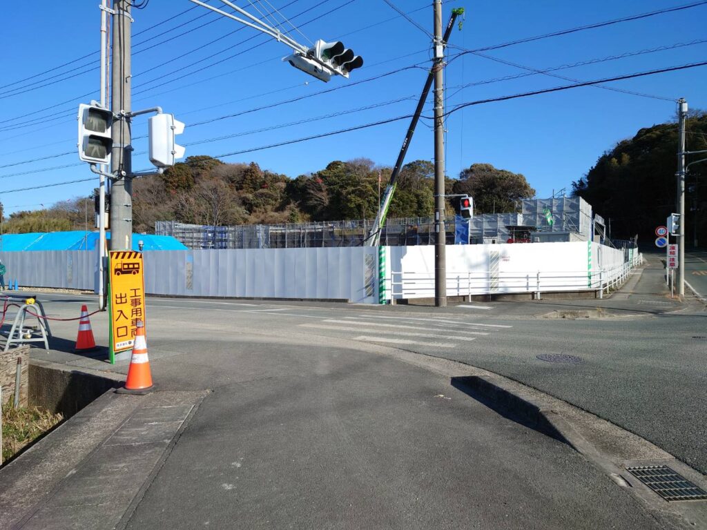現雄踏斎場へ続く道路を上って工事現場の写真を撮ってみました
